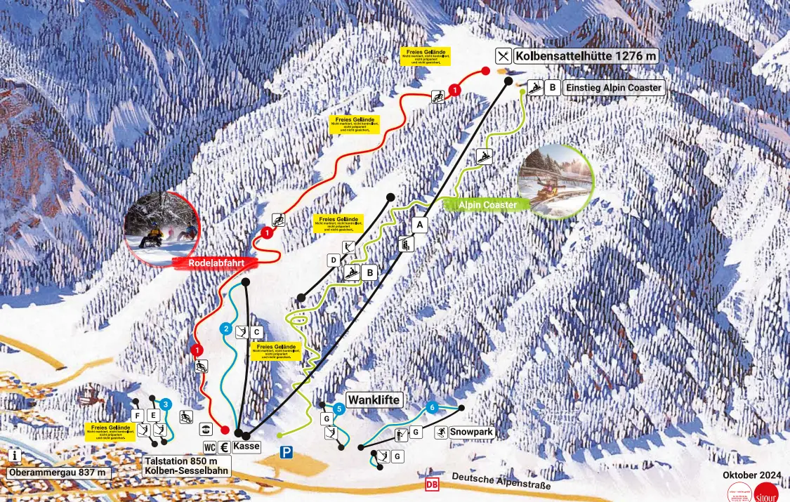 Pistenplan - Skigebiet Oberammergau - Kolbensattel & Wanklifte
